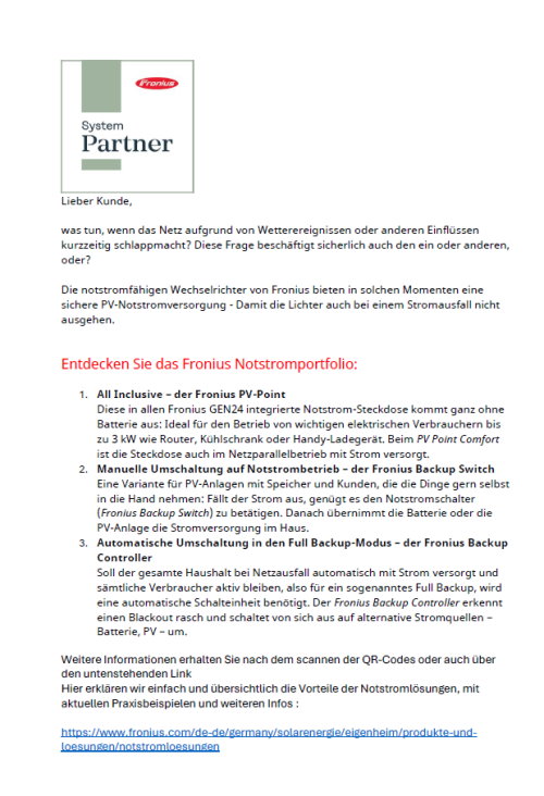 Der Fronius Backup Switch ist ein kostengünstiger 3-Wege-Schalter zur manuellen Aktivierung des Notstrombetriebs. Diese Lösung versorgt im Full Backup-Betrieb den gesamten Haushalt und bietet damit maximale Sicherheit und Unabhängigkeit.